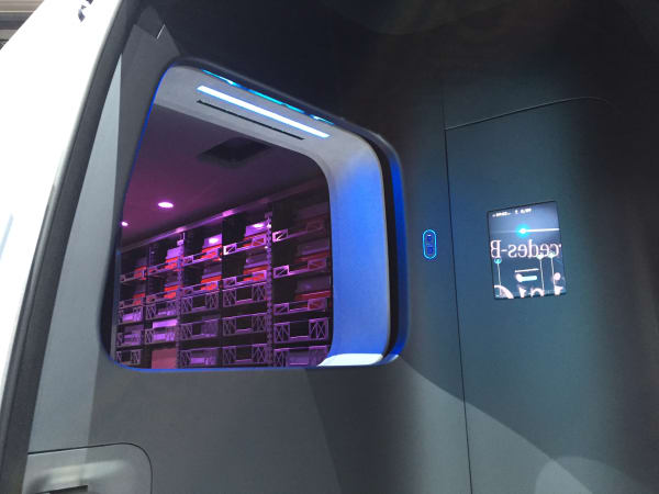 An automated cargo handling system in the Vision Van delivers the right packages for the stop to the driver. Photo: Deborah Lockrige