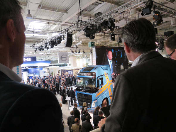 Media types from the world over found standing room only--even with two levels available-- during Volvo Trucks' 'presser' at the IAA Show. Photo: David Cullen