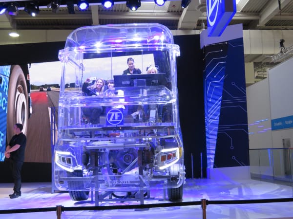 ZF fabricated a plastic see-through truck for a virtual-reality demo of its advanced technologies. Photo: David Cullen