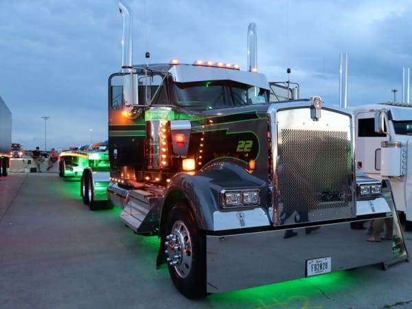 The "Green Lantern" is a 2022 Kenworth W900L that owns the night.