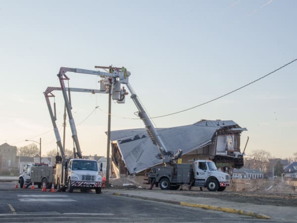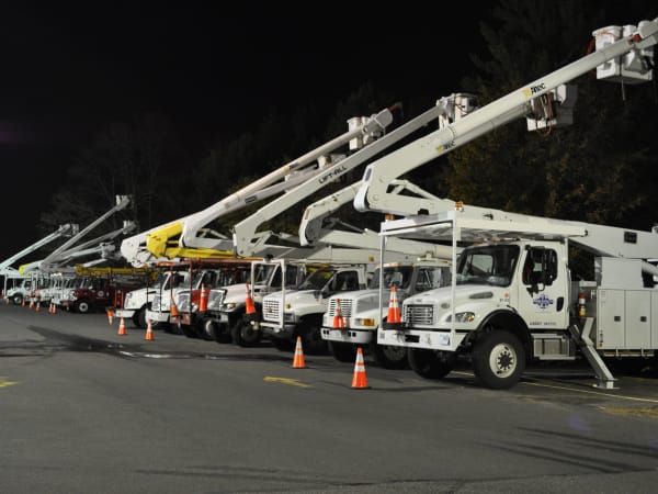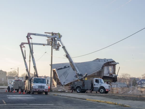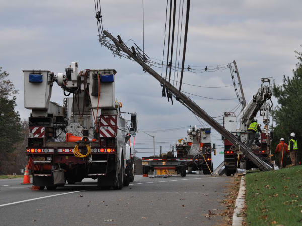Utility crews work to restore power after Hurricane Sandy in New Jersey.
