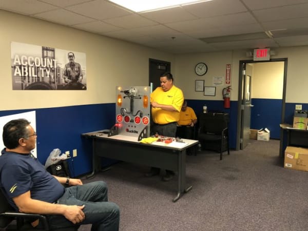 One station required a techncian to demonstrate forklift driving skills.