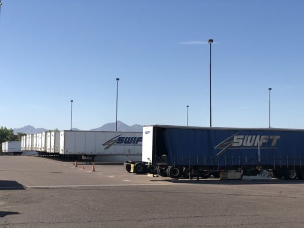 Swift's campus is a vast complex with hundreds of vehicles and trailers as well as the corporate headquarters.