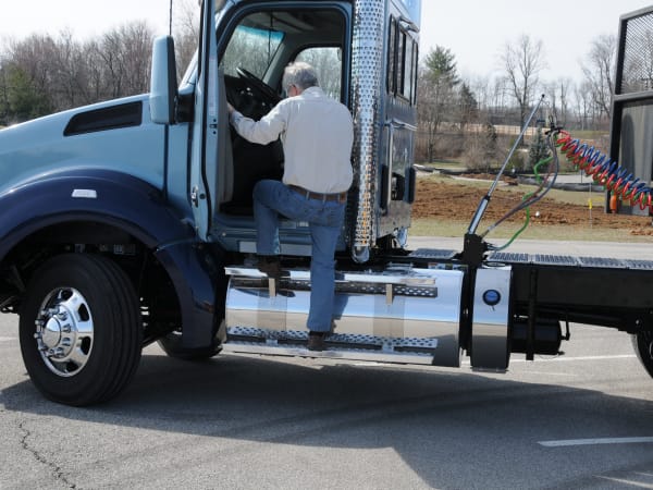 Handles inside and out make for a safe climb into the wider aluminum cab, and triple door seals shut out noises.