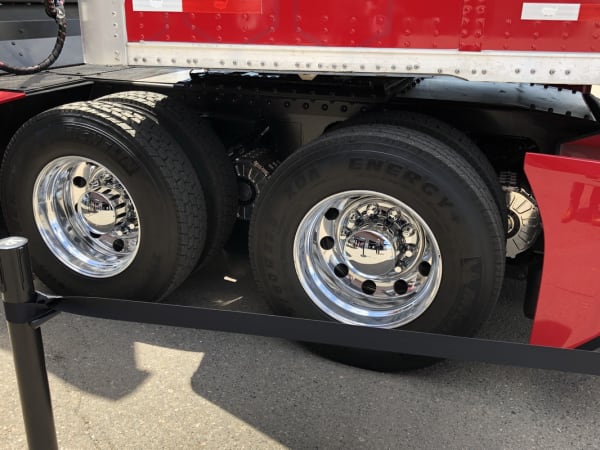 This truck was on display at Nikola World 2019. The fender includes kick panels to help with the air transition out to the trailer skirts.
