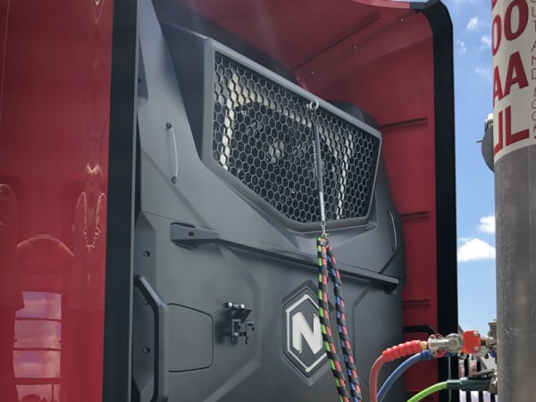 The hydrogen fuel cell stack is located behind this panel and up against the rear wall of the cab.
