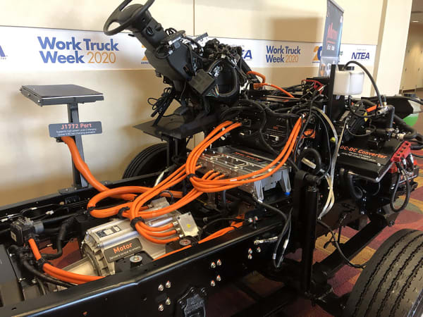 The eMV features a Dana powertrain with a mid-mounted motor driving a Dana Spicer 21060 17,500-lb drive axle.