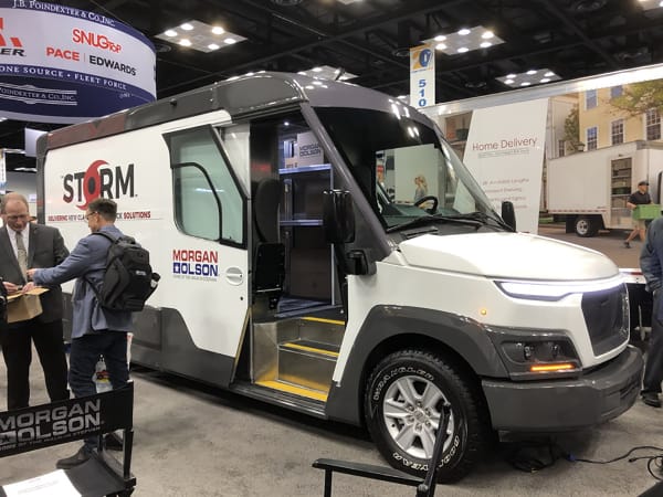 The "Storm" from Morgan Olson. This is a prototype Class 2 walk-in step van requiring no CDL to operate. It's powered by either a gasoline engine or a BMWi EV electric powertrain.