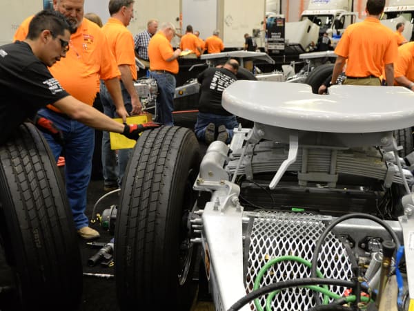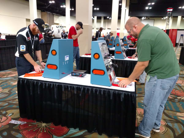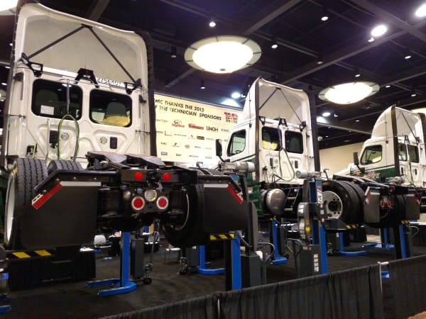 Major fleets supplied new trucks, tractors and trailers that have been rigged with faults for technicians to find. All equipment is brand new, and will go into service after the event. Photo: Tom Berg
