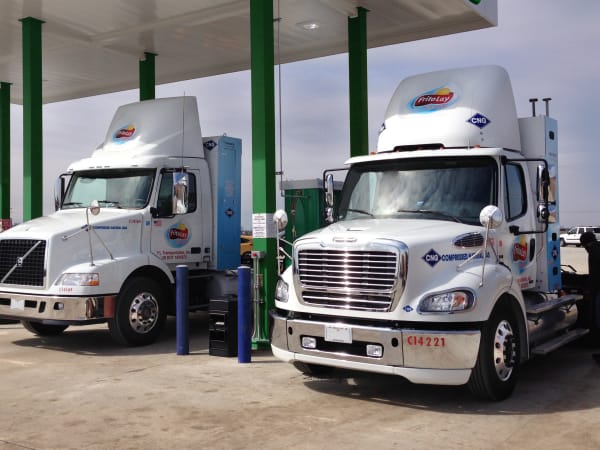 Frito-Lay CNG trucks fill up.