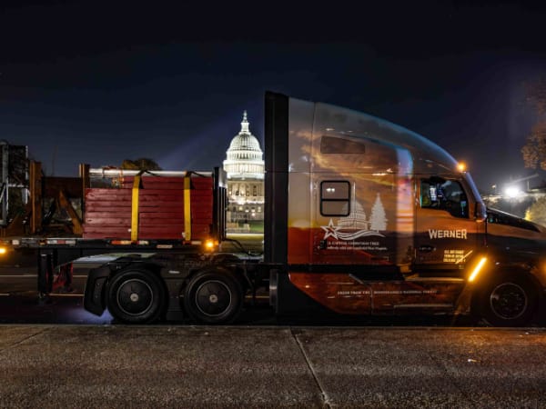 A Kenworth T680 Signature Edition – driven by Tim Dean and Jesus Davila of Werner Enterprises – delivered the 63-foot-tall Norway Spruce U.S. Capitol Christmas Tree from the Monongahela National Forest in West Virginia to D.C. for the Nov. 28 tree lighting.