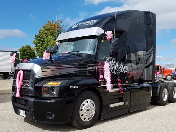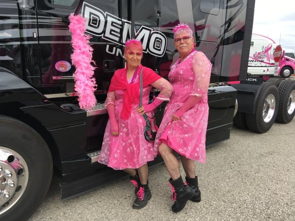 Yes, that's HDT Equipment Editor, Jim Park (the taller one) dressed a fine pink ensemble, along with Joanne Ritchie, the executive director of the Owner-Operators Business Association of Canada. They are Team OBAC, and they have participated in the Trucking for a Cure Convoy for the past five years. This year, Team OBAC raised over $3,600 for the cause. Lifetime contributions total slightly less than $10,000