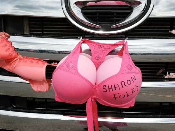 It's not clear if this was was a tribute or a testament to the fighters. There were eight bras on this truck, each with at least one name on it.