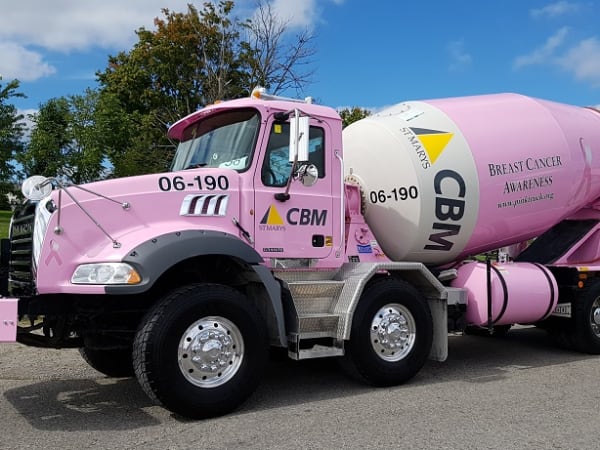 This fleet has been supporting the Convoy for a Cure since the beginning, and now operates several pinked-out concrete mixers. The customers often request deliveries from the pinkies.