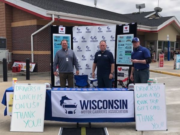 The Wisconsin Motor Carriers Association hosted a ThankATrucker fundraiser to thank truck drivers for delivering during the COVID-19 pandemic. Proceeds of the fundraiser were used to purchase $10 Kwik Trip meal gift cards that were handed out to over 900 truck drivers at various locations across the state.