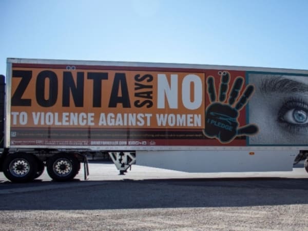Thomas E. Keller Trucking of Defiance, Oho, partnered with a local organization to wrap a semi-trailer to raise awareness of and help end violence against women.