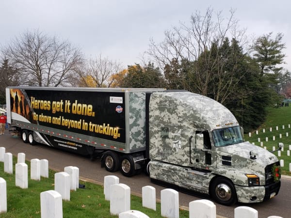 American Trucking Associations and its Workforce Heroes Program participated in Wreaths Across America, with professional truck drivers and Army veterans, Nate McCarty and Sammy Brewster, driving the program’s truck from Maine to Arlington National Cemetery.