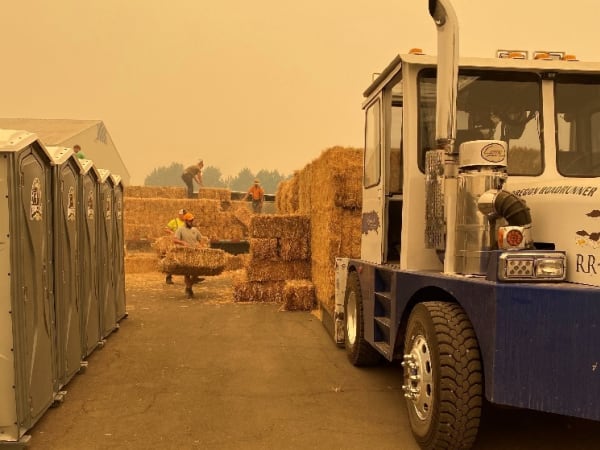 Boshart Trucking of Tangent, Oregon, assisted its local community during the wildfires that spread across the state. Efforts included the coordination of evacuations for local families and their livestock; the collection of and coordination of donations and the delivery of hay bales to assist communities devasted by the fires with erosion control.
