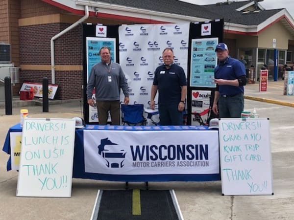 The Wisconsin Motor Carriers Association hosted a ThankATrucker fundraiser to thank truck drivers for delivering during the COVID-19 pandemic. Proceeds of the fundraiser were used to purchase $10 Kwik Trip meal gift cards that were handed out to over 900 truck drivers at various locations across the state.