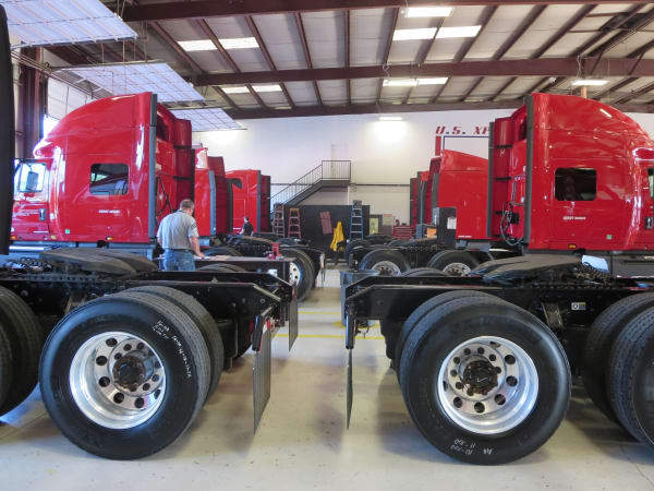 With warm spring breezes coming in the open bay doors, technicians rotated through the stations, with a buzzer denoting the beginning and end of the 20-minute time limit. Photo: U.S. Xpress