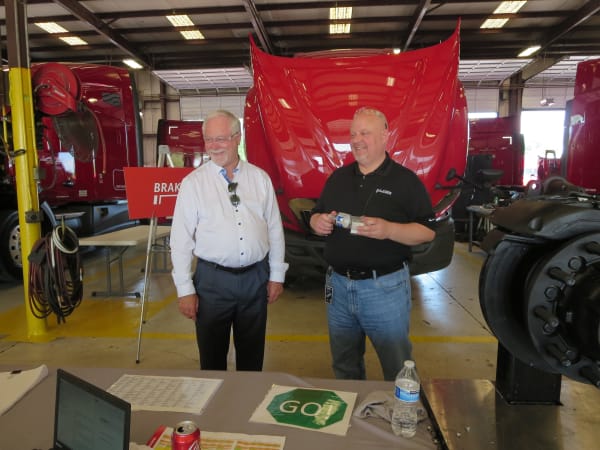 U.S. Xpress Chairman and co-founder Max Fuller, left, for whom the competition is named, chats with Gerry Mead, senior VP of maintenance. Photo: Deborah Lockridge