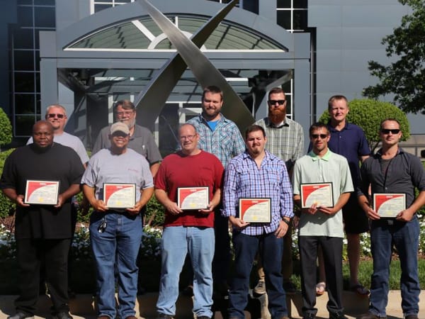 Happy winners pose at U.S. Xpress headquarters. All competing techs got a tour of HQ and got to meet the top execs. Photo: U.S. Xpress