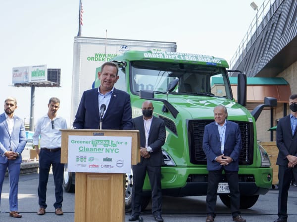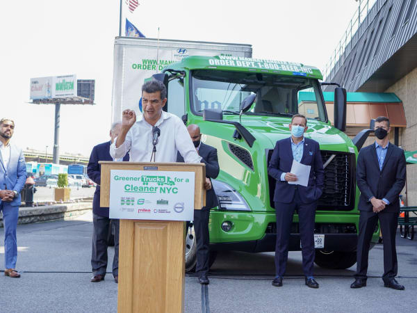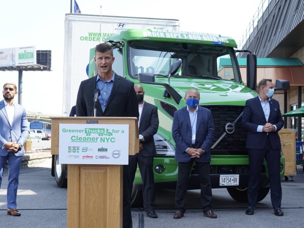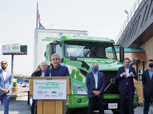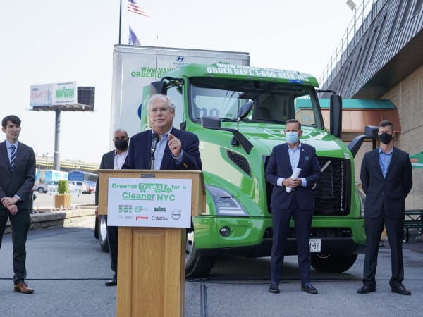New York City Department of Transportation Commissioner Henry "Hank" Gutman spoke to industry press and mainstream media about the importance of electrifying trucks in New York City.