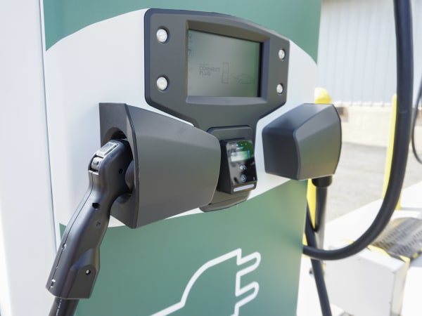 A charging unit has the ability to charge a single truck at 75 kilowatts, or spilt power between two trucks charging 50 kilowatts on one side and 25 on the other.