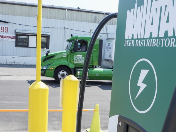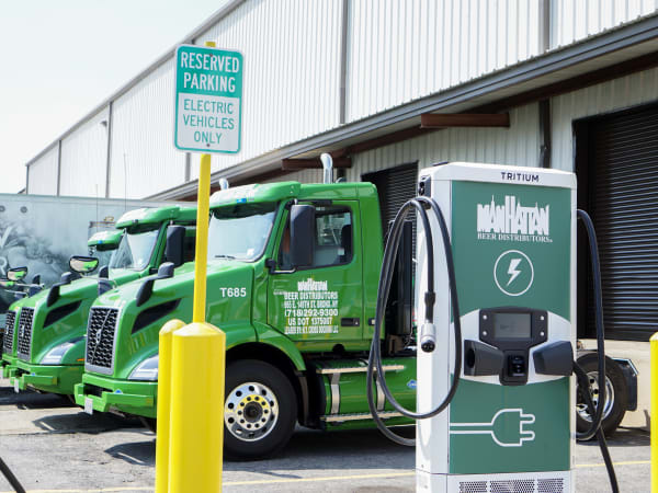 Manhattan Beer's fast chargers can recharge its Volvo VNR Electric trucks up to 80% in just over an hour.