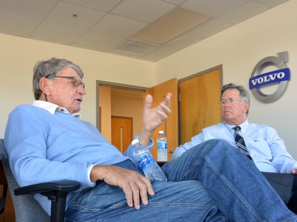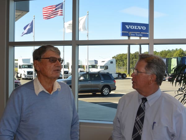 Prior to Young (right) purchasing a Volvo dealership in Charlotte and Hickory, NC, he was Executive Vice President for Volvo's commercial truck operations in North America. Left: Thage Berggren, first president and CEO of VTNA, now 84.