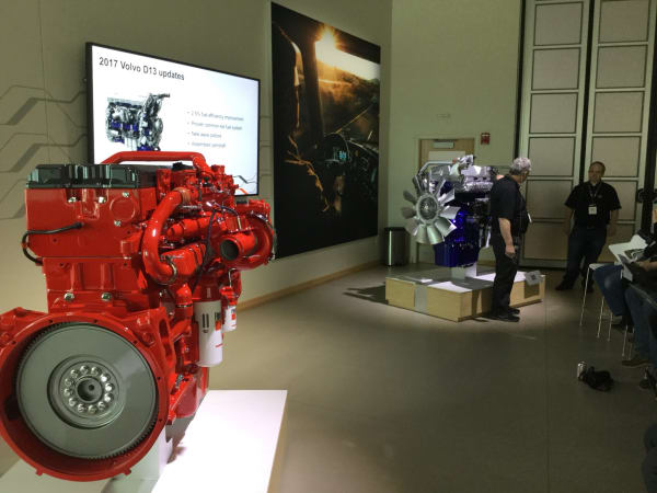 For the first time in a long while, there’s a red Cummins engine on display with the Volvo's D13 powerplant. Photo: Jack Roberts