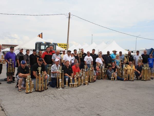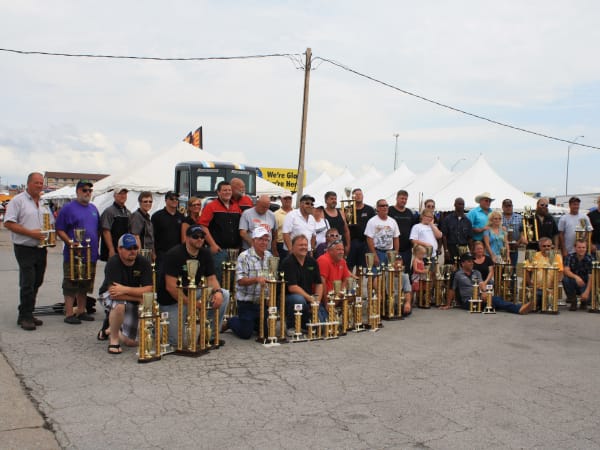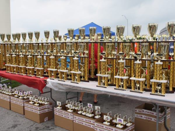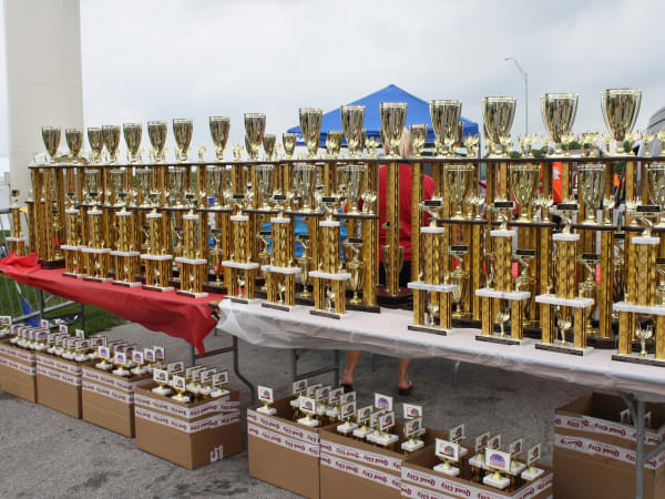 Super Truck Beauty Contest trophies lined up ready to award.