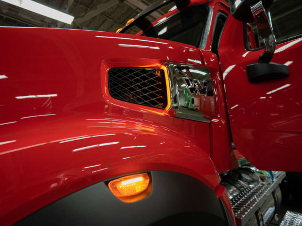 Composite hood construction on the Western Star 49X offers strength, greater impact-resistance, and weight savings.