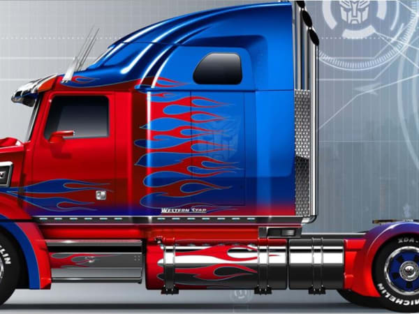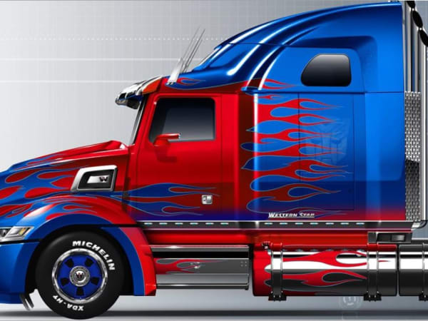 Western Star says Transformers director Michael Bay took one look at the early sketches of the 5700XE and said, "that's Optimus Prime." The company has no plans to offer an OP version of the 5700. We'll see ...