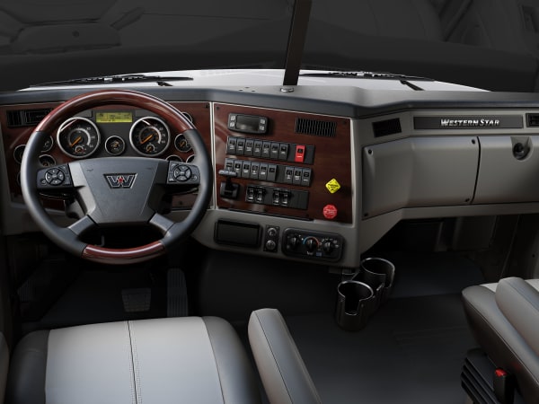 The truck-style dash looks traditional, but it's loaded with the latest safety technology. Options include lane-departure warning, adaptive cruise control, predictive cruise control, collision mitigation technology and multi-function controls on the steering wheel.