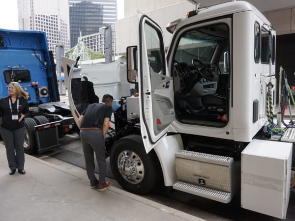 Conference attendees were able to learn from the experts onsite and ask questions on products. (Pictured: Peterbilt's Phase 1 597EV battery-electric truck, which was operated in various applications in California, South Carolina and Texas.)