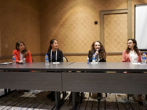 (Left to right) Joanna Buttler of DTNA, Frances Guo of Waymo, Brenda Mejia of Gatik and Lia Theodosiou-Pisanelli discussed autonomous truck technology during a conference session.