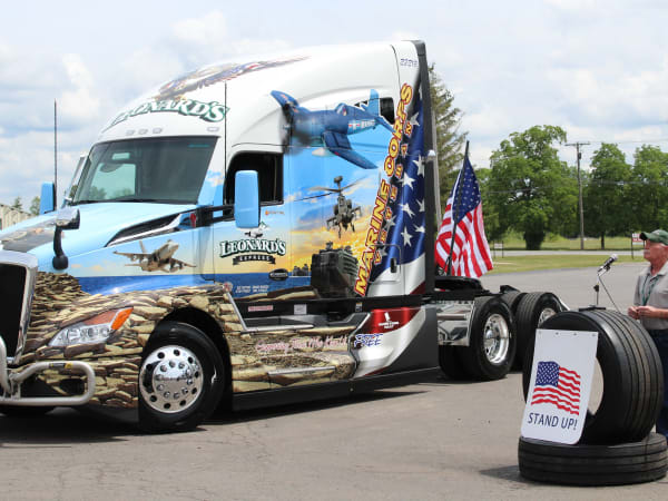 Leonard's Express' military themed trucks honoring drivers who served have been a hit all over the county.