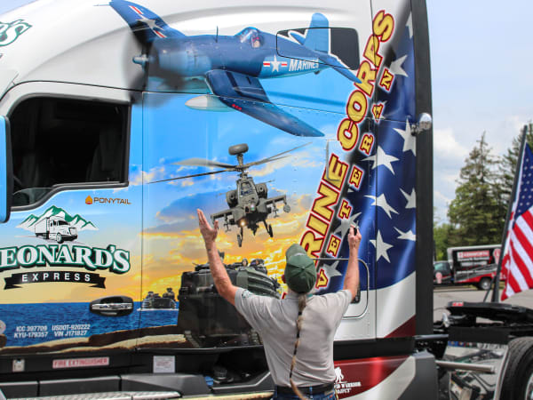Each Leonard's Express veteran honored with their own truck works with the graphics company to personalize the vehicle and their service.