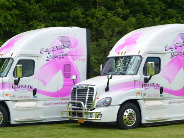 Two specially themed Leonard's trucks help raise breast cancer awareness out on the road.