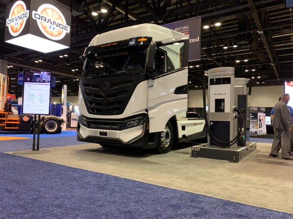 The battery-electric Nikola Tre was one of many zero-emission trucks on display at TMC.