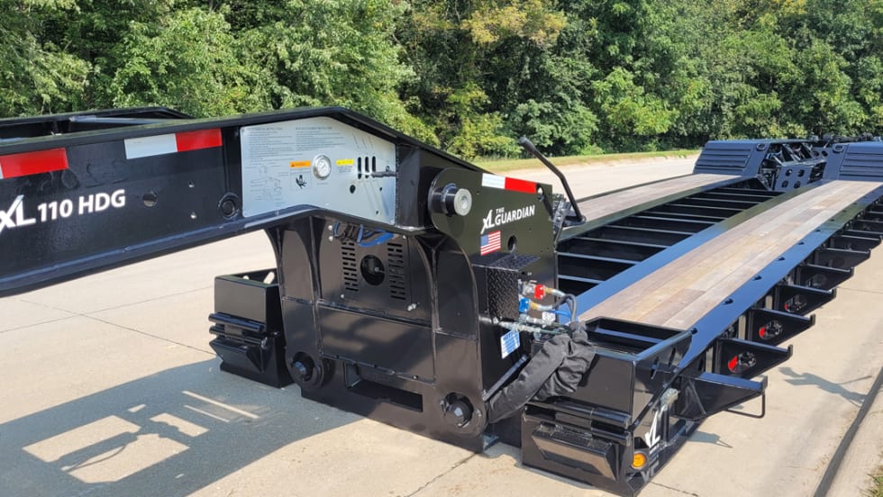 XL Specialized Trailers' XL Guardian 110 HDG trailer is a standardized construction trailer with a hydraulic detachable gooseneck lowboy design.