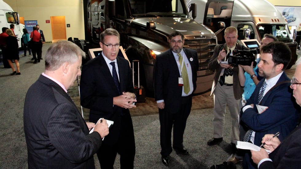 LAS VEGAS — Despite a challenging truck sales environment and not hitting a few goals laid out last year, Daimler Trucks North America is still confident it can remain the industry leader in this “new normal” environment, president and CEO Martin Daum told reporters at the American Trucking Associations Management Conference & Exhibition Monday.