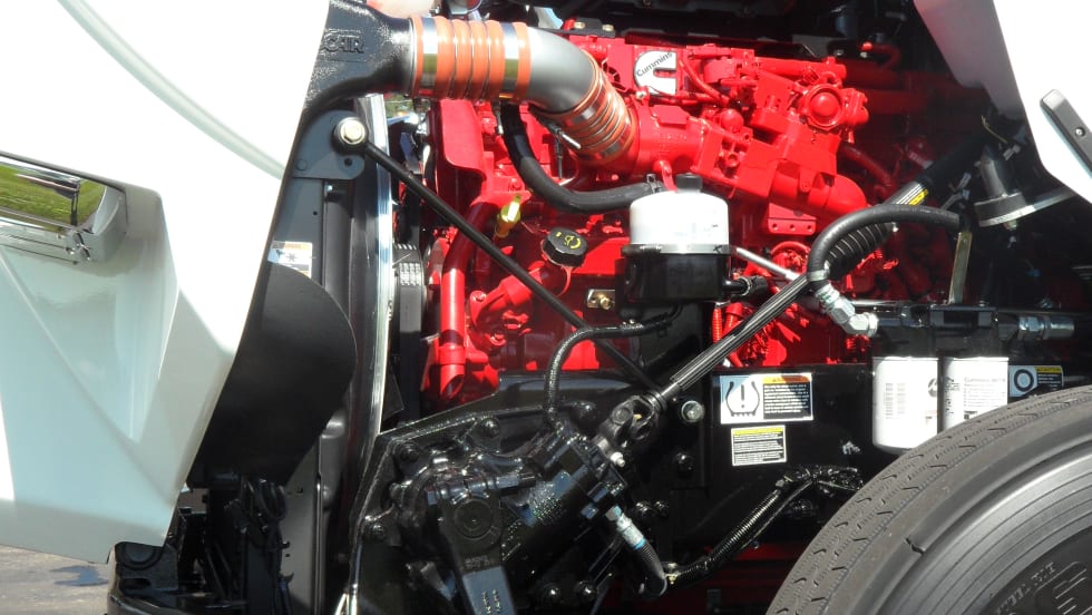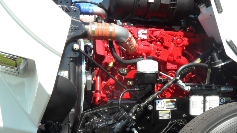 My drive of the Cummins Wesport ISX12 G was at a mid-July “natural gas summit” hosted by Kenworth at its plant in Chillicothe, Ohio. A half-dozen gas-powered KWs built for different applications were offered to dealers, customers and press reporters for inspection and evaluation. A few fellows with CDLs, like me, took them for drives, and I had – how shall I say? – a learning experience while in a T800 short-haul daycab tractor pulling a 53-foot van trailer.