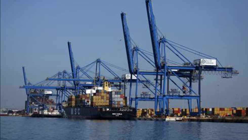 UPDATED -- The contract is between employers who operate port terminals and shipping lines, represented by the Pacific Maritime Association, and dockworkers represented by the International Longshore and Warehouse Union.