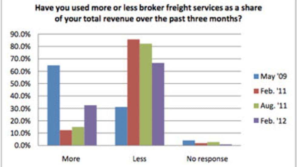 Carriers are continuing to move away from the use of brokers, although not as much as in 2011, according to Transport Capital Partners