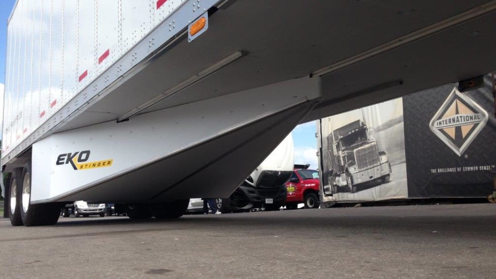 ATDynamics, now part of Stemco, says 75% of wind drag at highway speeds comes from the trailer.