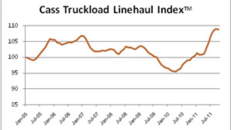 Truckload carriers continue to command prices that are well above those from a year ago, according to the Cass Truckload Linehaul Index