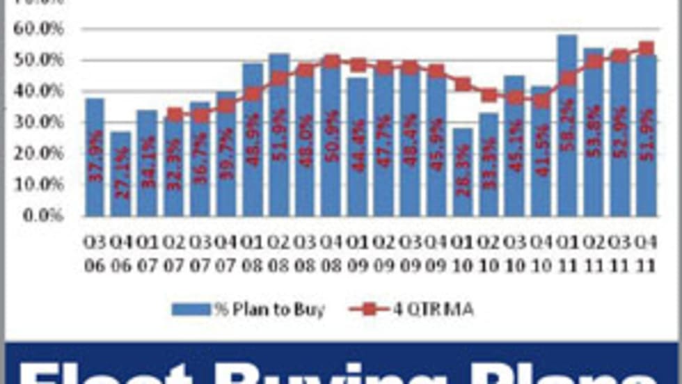 More fleets are planning purchases of power units and trailers at a larger volume than the same period last year, according to a quarterly fleet survey. The Q4 2011 Fleet Sentiment Report Buying Index shows a 22% improvement over the same quarter 2010. The index currently stands at 89.2. The lower index for Q4 versus Q1-Q3 is primarily a reflection of fewer fleets planning trailer orders in the next three months