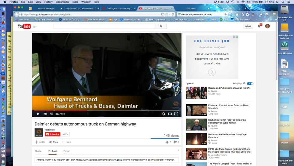 Read More →Several news reports in the past week indicate that progress is being made on the road to autonomous commercial trucks.